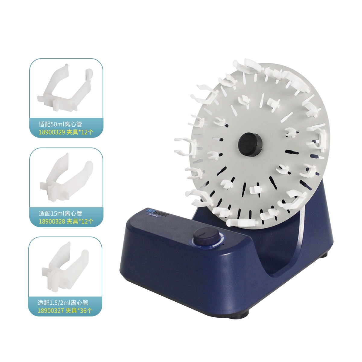SCI-RD-E經濟型圓盤旋轉混勻儀功能和優勢 ▲ 一鍵旋鈕操作,溫和充分混勻; ▲ 轉速范圍可調,從0至80rpm; ▲ 直流電機,更好的啟動和調速特性 ▲ 多種離心管夾具可供選擇。適用于1.5mL,15mL,50mL離心管。